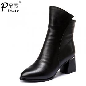 topgloria/汤普葛罗舒适秋冬新款圆头女靴 舒适粗高跟短靴110360H 冬靴特价清仓2件9折,下单送后跟帖