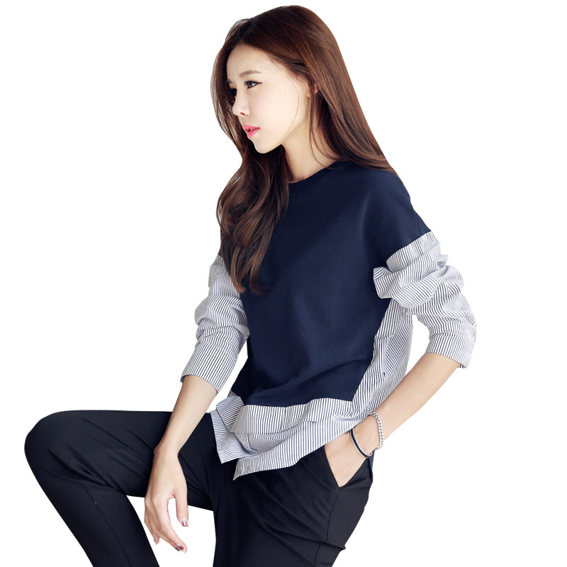 韩都衣舍2017韩版女装夏装新款时尚修身显瘦圆领条纹T恤OGY7711娋 显瘦版型 舒适面料 条纹元素